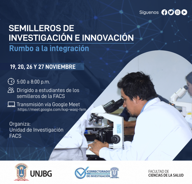 La Unidad de Investigación de nuestra Facultad de Ciencias de la Salud organiza el curso “Semilleros de investigación e innovación, rumbo a la integración”, del 19 al 27 de noviembre.